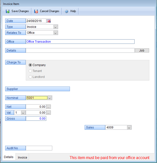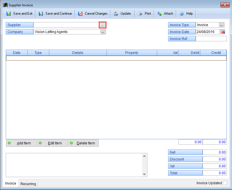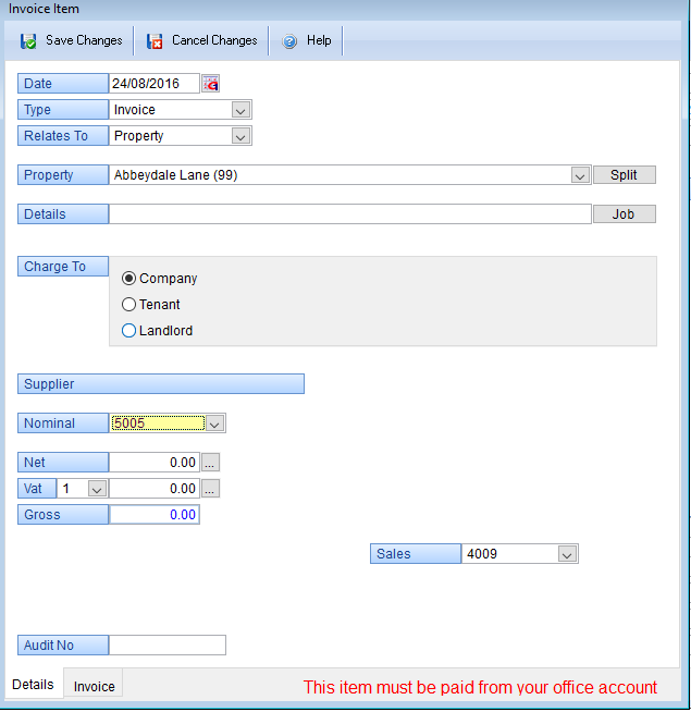supplier, the system will automatically default and charge VAT to the Landlord