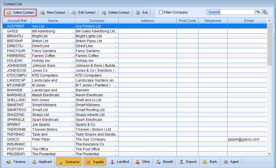 hand side of ‘Supplier’ and a new window will open for you to choose a supplier