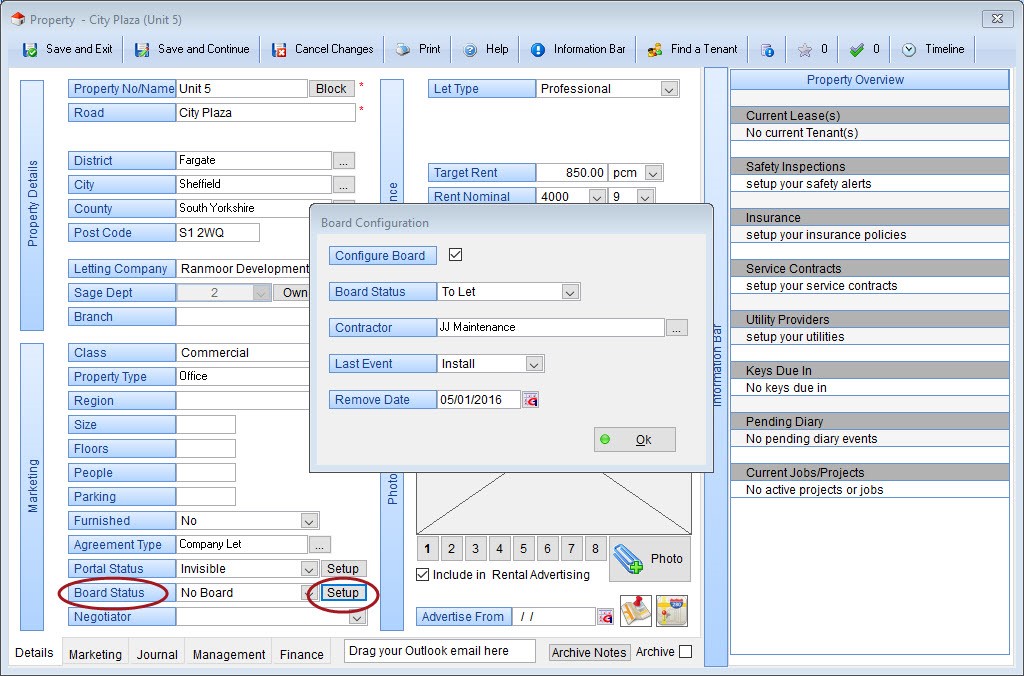 highlighted Board Status below, which can be set to No Board, To Let or Let by.