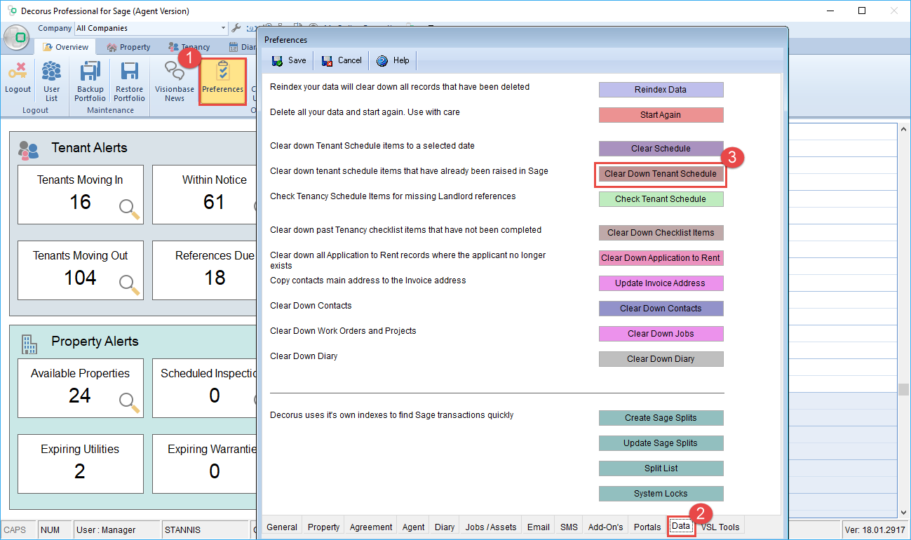 Go to Preferences and under the 'Data' tab select 'Clear Down Tenant Schedule' -