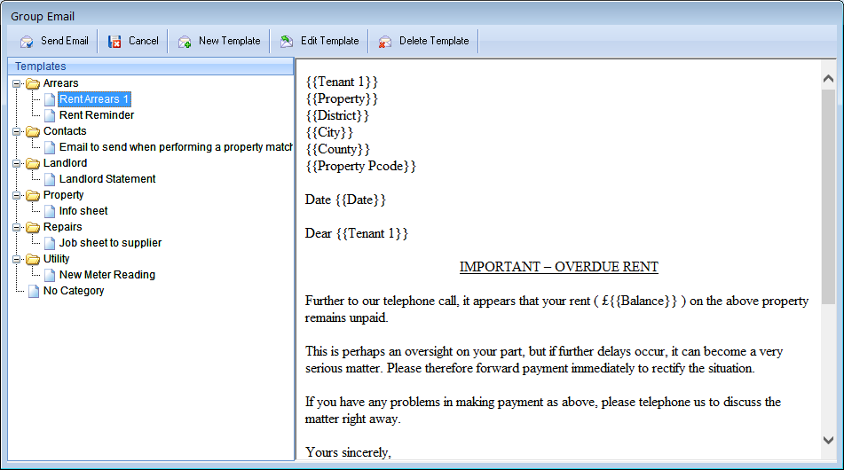 ‘Letter’ templates in the ‘Landlord’ module will have different templates from opening