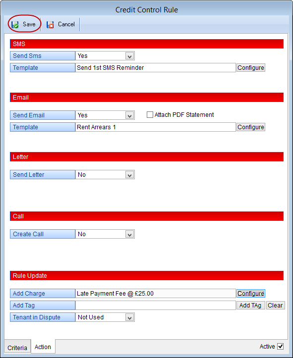 Once all ‘Criteria’ and ‘Action’ are set, click ‘Save’.
