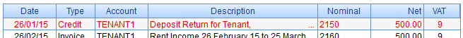 Status’ window, tick ‘Create Deposit Credit’ - a credit transaction is then