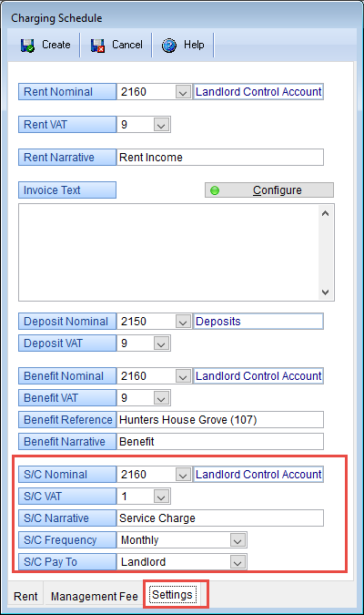 When creating the tenancy schedule with service charge incorporated, the options will appear as follows –