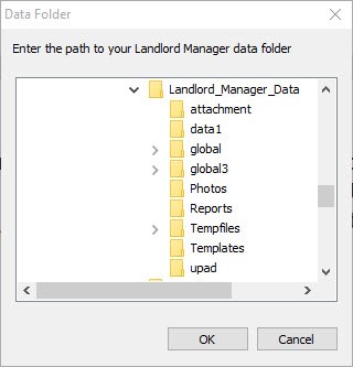 your Windows folder tree will appear. Browse to the ‘Landlord_Manager_Data' folder, and select that location.