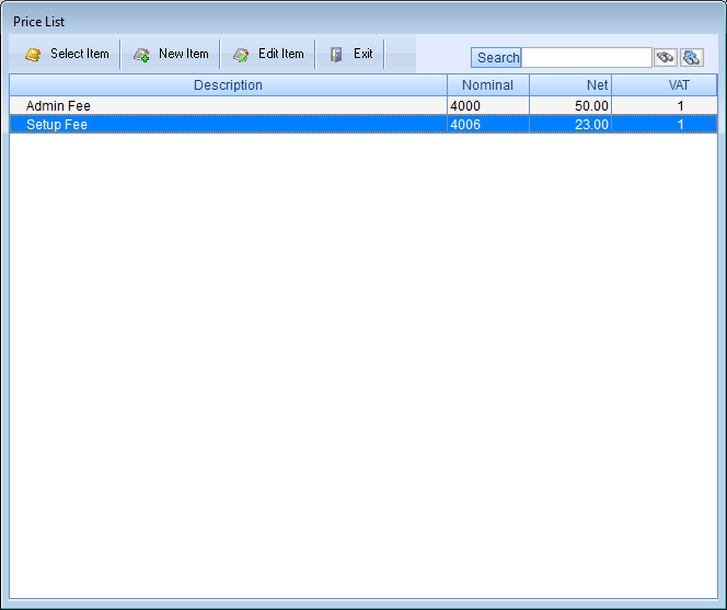 ‘Recurring Charges’ window into the Decorus ‘Invoice’ module