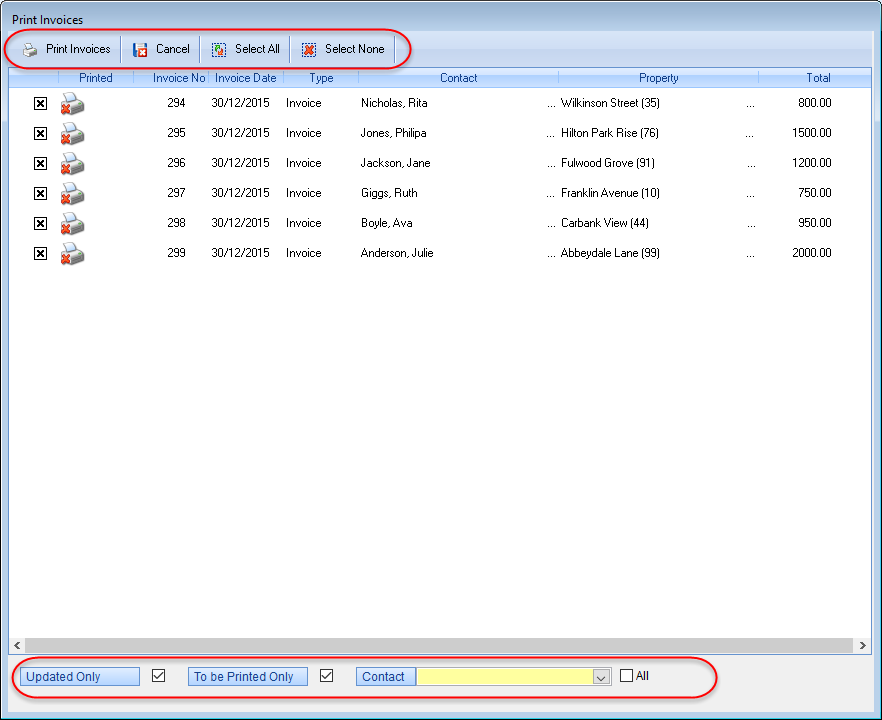 You can select or de-select the invoice and if ‘Print