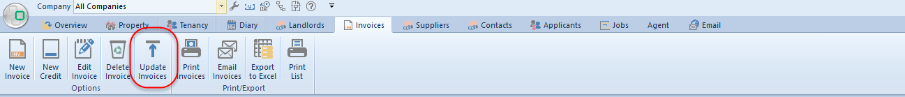 clicking on ‘Update Invoices’ in the main menu