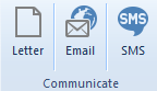 ‘Communicate’ section includes ‘Letter’, ‘Email’ and ‘SMS’ (Text). Click on one