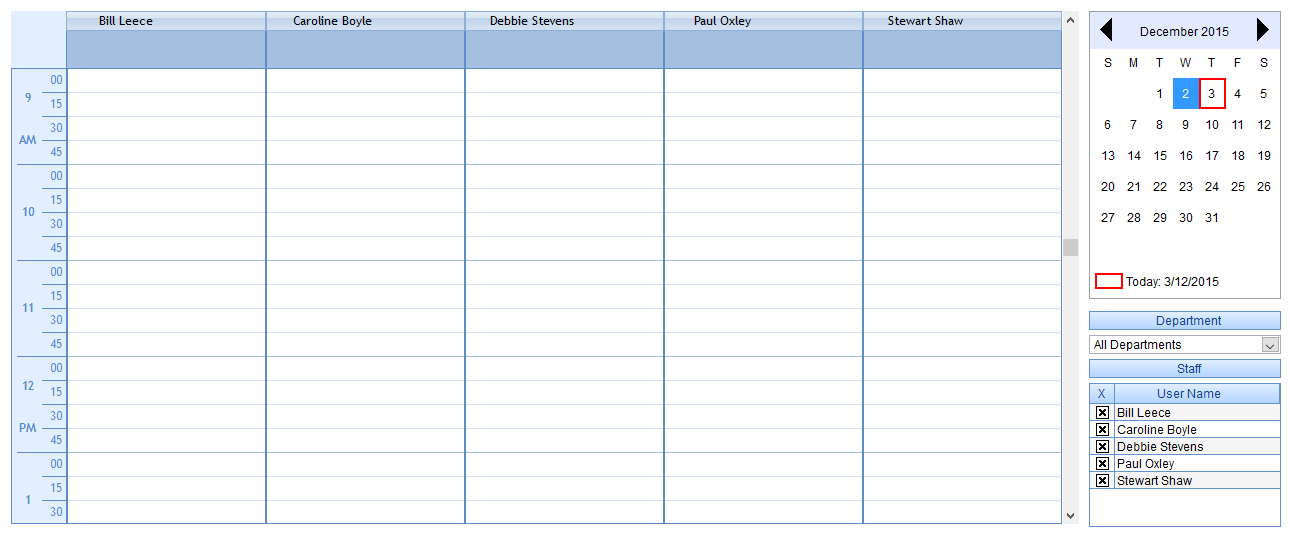 selecting ‘User List’ select the relevant user and tick ‘Show in Diary’ option.