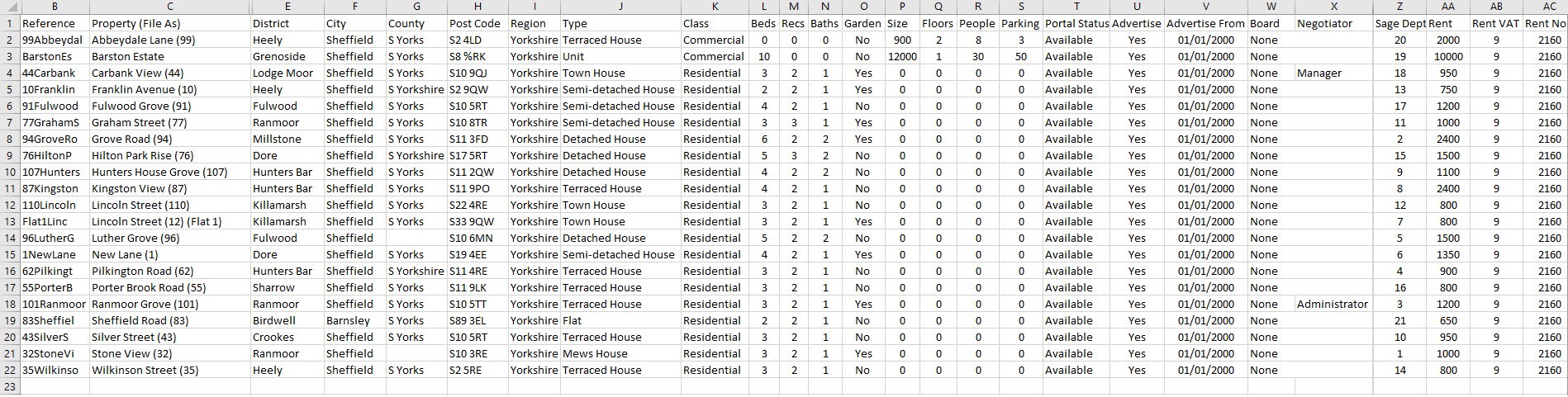 your current property list into an easily readable format report.