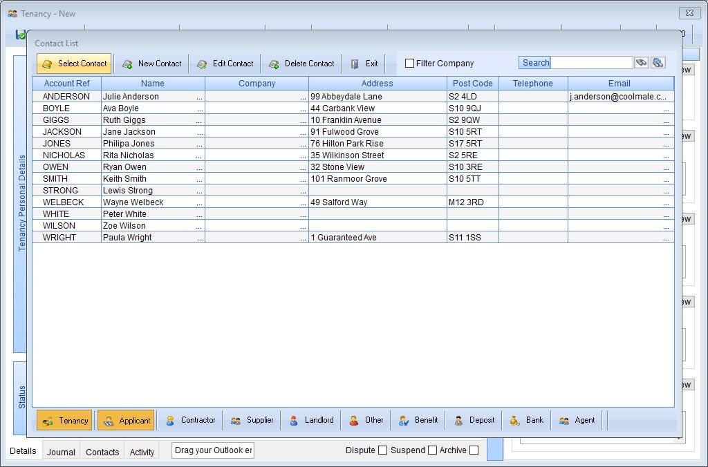 option will open the ‘New Tenancy’ screen and allow the creation of agreements.