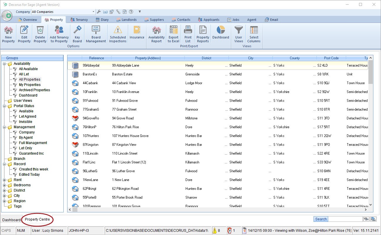 ‘Property Centre’, at the bottom of the screen. It is defaulted to the